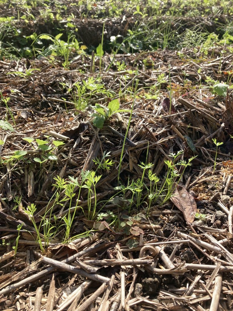 畑のようす〜9月下旬〜 今年は季節の移ろいが暦より少し遅い気がします。26日に彼岸は明けましたが、彼岸花は月末になってもまだ開かない蕾があります。そういうこともあって、種まきは例年より少し遅めです。8月の下旬はまだまだ熱中症になる暑さで体力的に無理だったこともありますが、雨も9月に入ってようやく降ってくれるようになったので、人参も遅めに蒔いて正解でした。