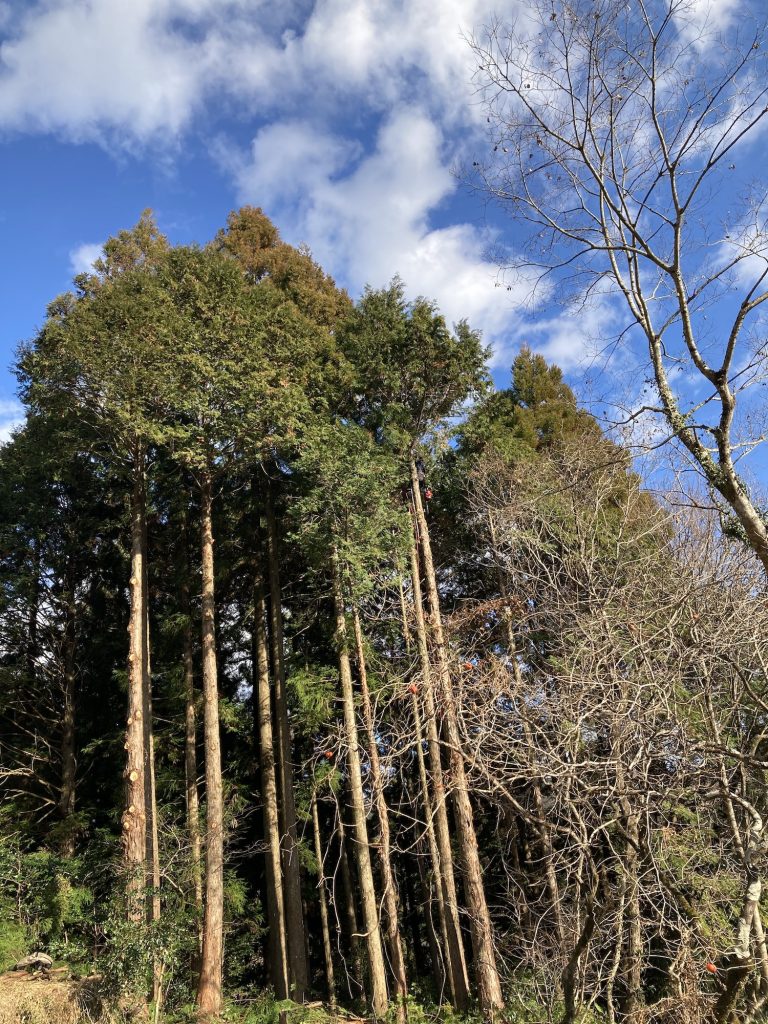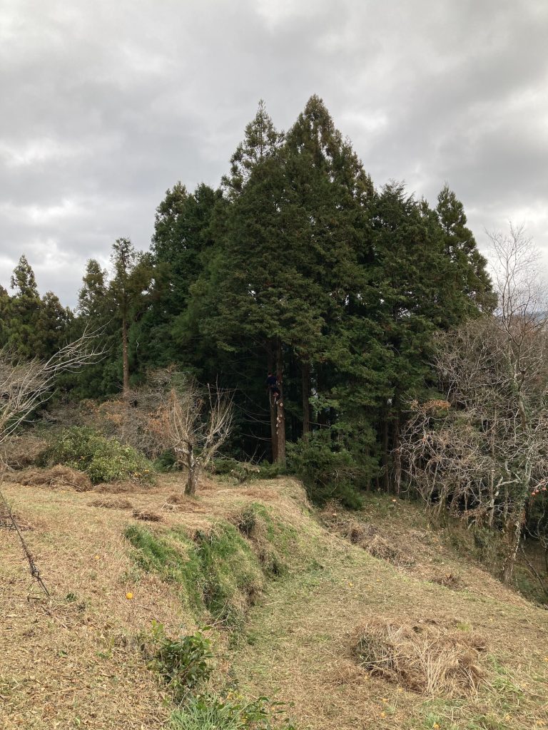 この一帯は主たる畑から少し離れたところにあり、田の他に梅や柚子の畑、それから少しの植林があります。車を横付けすることもままならず、とても不便でした。杉や檜の枝は伸び放題で下の梅も枯れていく状態。田を始めるあたって、しっかり手入れをすることにしました。